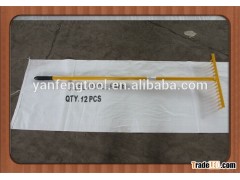 yellow garden rake with steel handle, 16 teeth, 12pcs/woven bag |